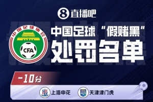 体育资讯1月29日讯 中国足协公布“假赌黑”专项整治行动受处罚的俱乐部名单,与体育资讯独家透露信息一致,津门虎、申花被罚10分,中超共9队被罚分,上赛季积分榜前7的球队中只有成都蓉城没被处罚。