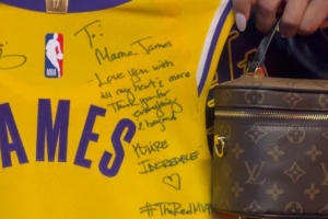 赛后,詹姆斯在自己的球衣上写上了对母亲格洛丽亚说的话,然后把球衣送给了母亲。詹姆斯在球衣上写道:“妈妈,我全心全意地爱你,甚至更多。感谢你所做的一切,远远不止这些。你真的太了不起了 ♥️ 真正的MVP。”