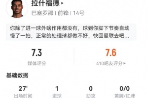 体育资讯1月19日讯 巴萨在本轮西甲1-2不敌皇社,拉什福德本场数据如下: