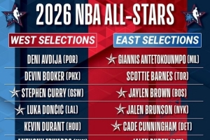 本次全明星将采取美国队VS世界队的对阵,名记Marc Stein报道称,NBA官方将在周三(北京时间)公布美国队和世界队分组的正式阵容名单。