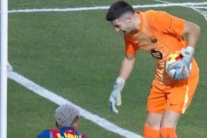 上半场,阿劳霍和霍安·加西亚合力防下了对手的一次进攻,霍安·加西亚将球没收后,似乎没意识到此刻并不是死球状态,他拿着球走出底线,拍了拍阿劳霍的头来庆祝。这送给对手一个角球。