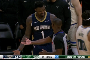 GIF-锡安关键一攻运球脱手后撞倒科菲再度被吹进攻犯规