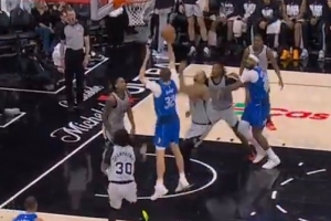 GIF——文班亚马惊天大帽弗拉格 后者摊手抱怨干扰球