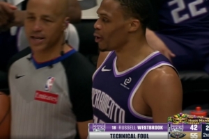 GIF-威少认为被犯规,冲裁判吼吃技犯