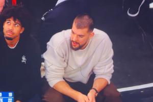 值得一提的是,比赛进行期间,转播镜头给到步行者新援伊维察·祖巴茨:
