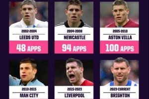 体育资讯2月12日讯 在本轮英超布莱顿0-1不敌维拉的比赛中,米尔纳替补登场,完成个人英超第653次出场,追平了巴里保持的英超历史出场纪录,以下为米尔纳英超生涯代表各球队出战场次分布: