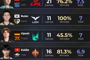 4.Eddie:16场比赛、81.3%胜率、6.9KDA;