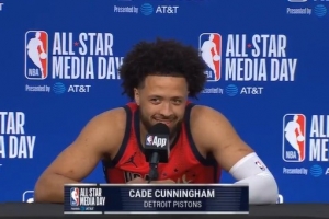 体育资讯2月15日讯 今日NBA全明星媒体日,活塞球星坎宁安接受了媒体采访。