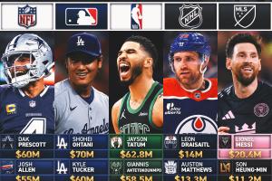体育资讯02月18日讯 FOX体育发布了全美五大联盟的TOP5薪资,大谷翔平全美最高7000万美元,梅西2040万美元,塔图姆6280万美元。