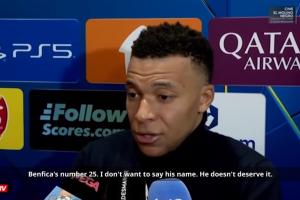 姆巴佩:首先我要说,这是欧冠,有全世界最清晰的镜头。你们看他的脸。他为什么要把球衣拉起来挡住嘴?你们听不到他说什么,但看他看到我们反应后的表情,他的脸说明了一切。这种事我们不能忍。