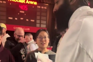 赛后,哈登给远道而来的上海球迷送上了签名。