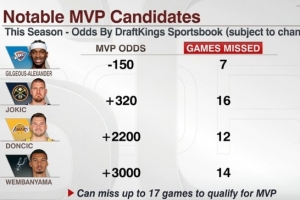 约基奇 +320(押注100,若中连本带利得420) 目前缺席16场