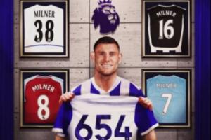 横跨24年!40岁米尔纳迎个人英超第654次出场,成英超历史出场王