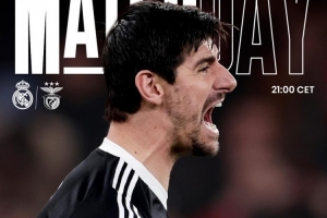 力争晋级!皇马发布对阵本菲卡次回合海报,库尔图瓦单人出镜