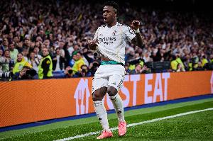 本场比赛,维尼修斯为皇马打进了锁定胜局的进球。进球后,维尼修斯再次来到角旗区用舞蹈的方式庆祝。