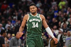 本场比赛,雄鹿球星字母哥出场32分钟,8投4中,罚球16中14拿到22分13板7助攻,有4失误,正负值+6。比赛最后时刻,字母哥因伤提前退场。