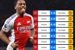 阿森纳在英超主场已对曼联取得了四连胜,这是英超历史上任何球队对阵曼联的最长主场连胜纪录。